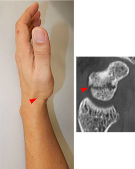 - 手の甲側の痛み、腫れ