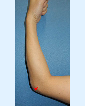 テニス肘では、肘の外側や前腕に痛みが出ます。